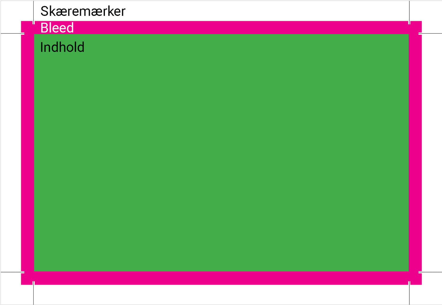 - Bleed skal indeholde samme farve eller indhold som selve tryksagens indhold for at undgå hvide streger